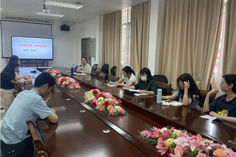 为深入学习贯彻党的二十大精神,进一步发挥党建的引领作用,毛泽东思想和中国特色社会主义理论体系概论教研室党支部于6月13日下午在太阳成集团tyc7111cc101会议室开展了主题为“学习中国共产党党史”的党支部书记讲党课活动。本次活动以党史学习教育为重点,活动由教研室党支部书记王冬冬主讲,党支部全体成员参加。